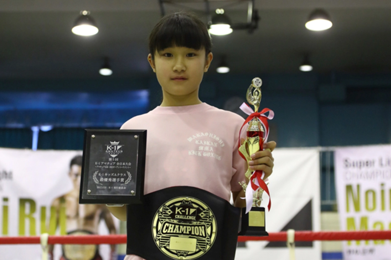 第5回K-1アマチュア全日本大会~アマチュア日本一決定オープントーナメント~ キッズ(小学生)Bクラス 1~3年生・軽量級 全日本トーナメント 優勝 梨本都<MVP>