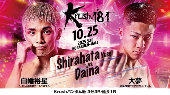 「Krush.181」10.25(土)後楽園 白幡裕星vs大夢 コメント公開! 「今後のバンタム級は白幡裕星だなと思わせます」(白幡)vs「テクニックのある選手にテクニックで上回る所をご覧下さい」(大夢)
