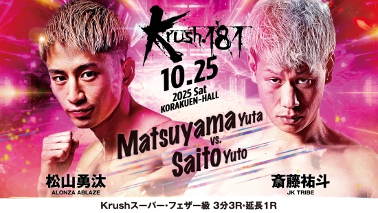 「Krush.181」10.25(土)後楽園 松山勇汰vs斎藤祐斗 コメント公開! 「前回、前々回と負けてスタイルを1から見直して来た」(松山)vs「気づいたら倒れてたみたいな感覚でカミソリキックをかましたい」(斎藤)