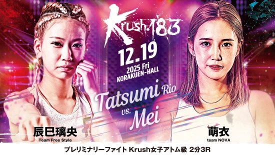 「Krush.183」12.19(金)後楽園 辰巳璃央vs萌衣 コメント公開! 「全局面圧倒して、タイミングがあれば倒しにいく」(辰巳)vs「デビュー戦の私がプレリミナリー第1試合から盛り上げる」(萌衣)