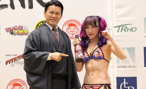 Melty輝、須藤元気Pデザイン水着で登場し特製シャンパン用意「池内紀子を大好き作戦で」戦略も明かす=4.11 K-1GENKI代々木第二