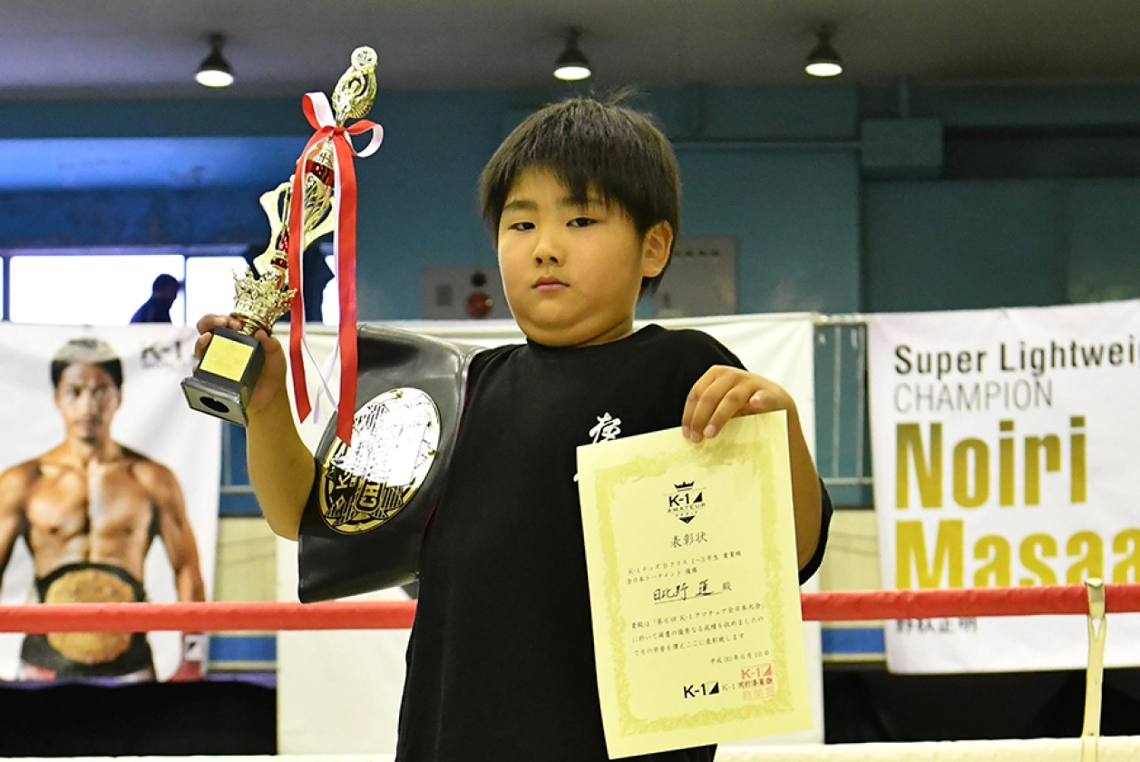 第6回K-1アマチュア全日本大会~アマチュア日本一決定オープントーナメント~ キッズ(小学生)Bクラス 1~3年生・中量級 全日本トーナメント 優勝 大曽根愛斗