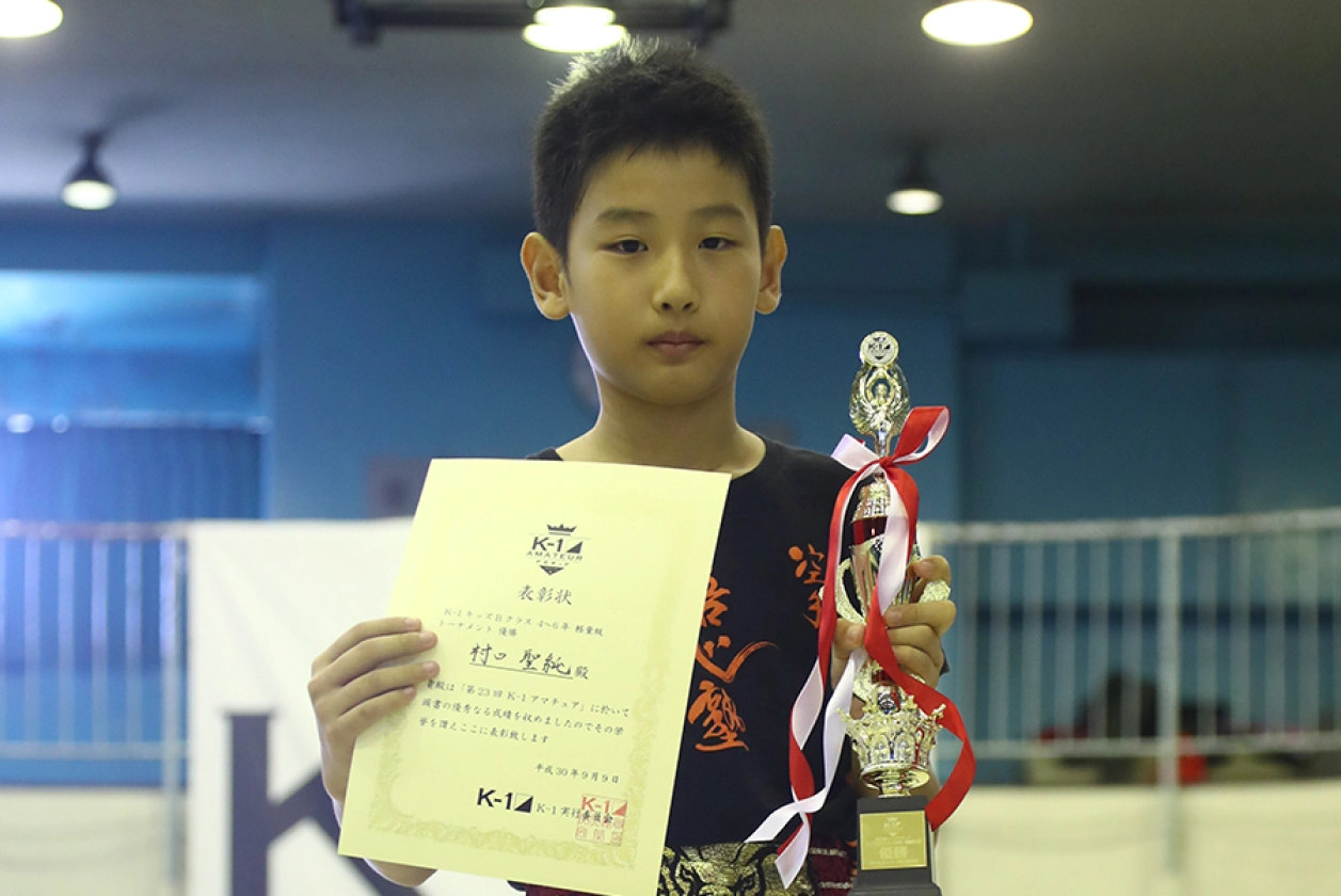第23回K-1アマチュア全日本大会予選トーナメント(チャレンジ・マスターズ)&交流大会 キッズBクラス 小学生4~6年生軽量級 トーナメント 優勝 村口聖純(悟心塾)