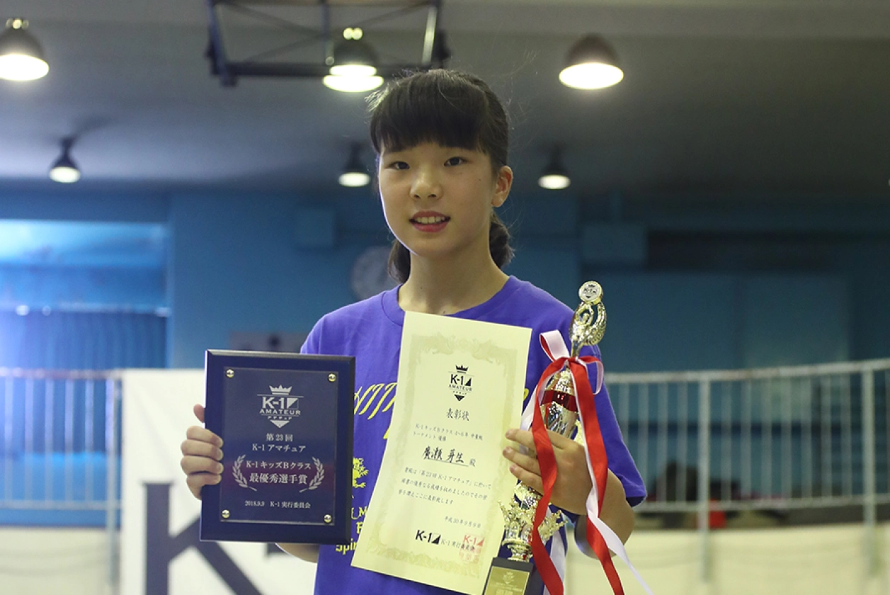 第23回K-1アマチュア全日本大会予選トーナメント(チャレンジ・マスターズ)&交流大会 キッズBクラス 小学生4~6年生中量級 トーナメント 優勝 廣瀬芽生(石島道場)