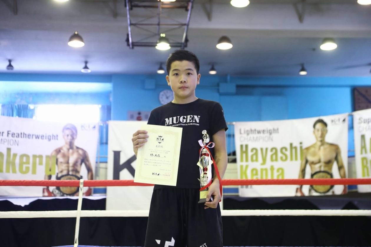 第32回K-1アマチュア~全日本大会・東日本予選トーナメント(キッズ・ジュニア・マスターズ)&ワンマッチ~ キッズ(小学生) Bクラス5~6年生 重量級 トーナメント優勝 林辰壱(MUGEN KARATE AOYAMA)
