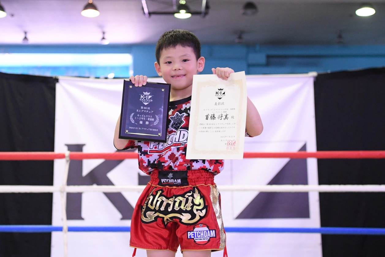 第66回K-1アマチュアK-1キッズ(小学生) Aクラス 1~2年生 重量級 トーナメント 首藤 将真(実戦空手道勝空会)