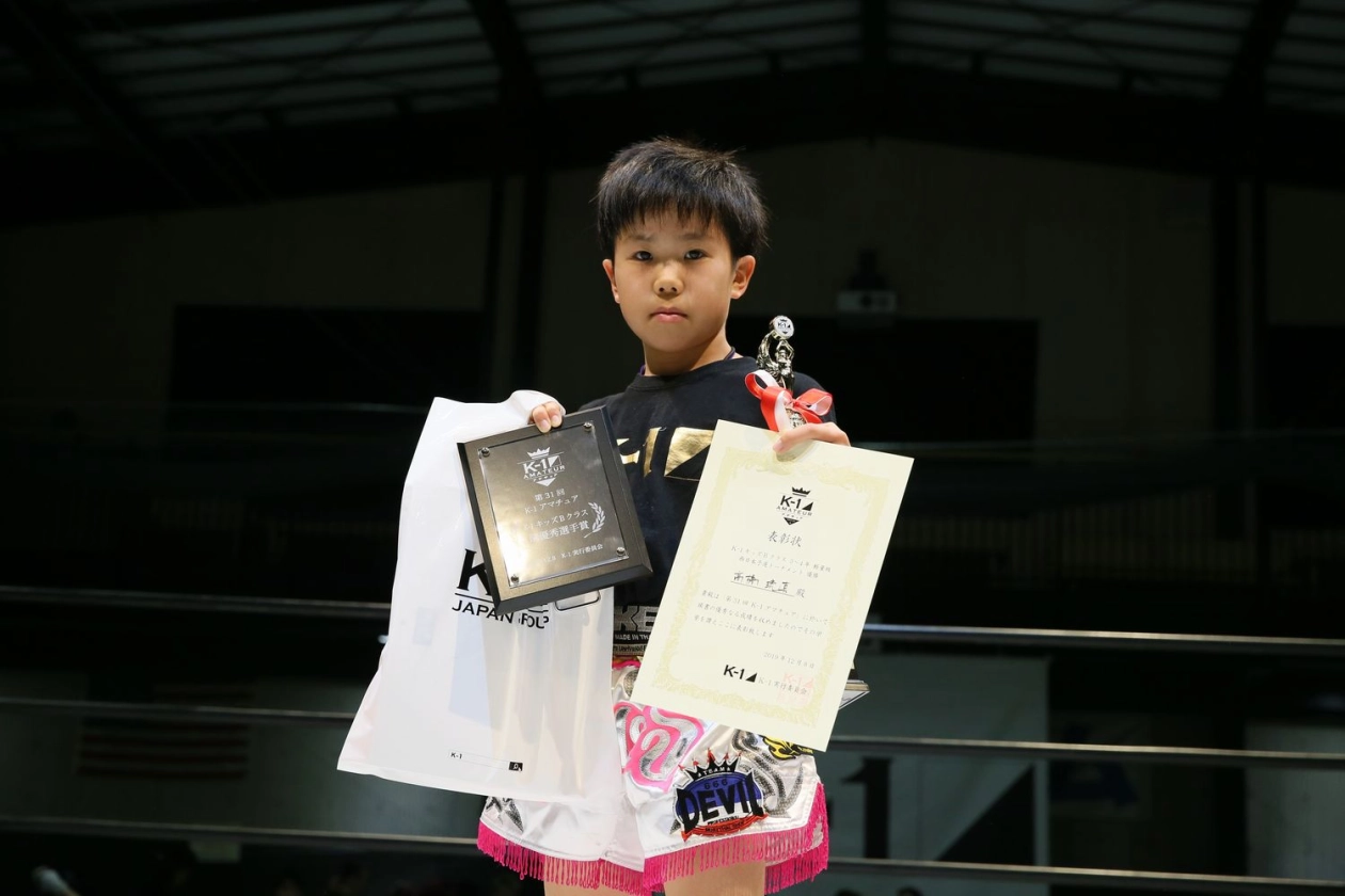 第31回K-1アマチュア ~全日本大会・西日本予選トーナメント&ワンマッチ~キッズ(小学生) Bクラス3~4年生 軽量級 トーナメント優勝 髙橋琉真(K-1ジム川口)