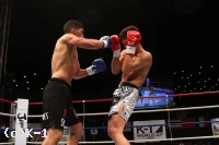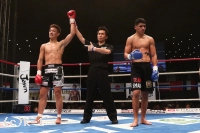2R、やはりガードを立ててユネスに向かう野杁はパンチを弾きながらロープ際に追い詰める。何とか野杁を遠ざけん、下がらせようとするユネスだが、野杁は左三日月蹴りを入れつつ前進を止めない。そして左ボディを決めるとユネはダメージを隠せず、横を向いてしまいダウン。吐いてしまったマウスピースをレフェリーに戻されたユネスはそこから回転二段蹴りを見せるなどして反撃するが、野杁はやはりガードを破らせず、ダメージを負わない。