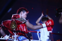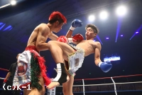 3R、パンチ主体だった椿原だが左インロー、左ハイと蹴りの比重を増やす。ヒザを多用していく蒼士だが、椿原の右ストレートがカウンターでとらえる。蒼士は蹴り主体で行き、椿原の足を払って転倒させる。パンチに対しヒザのカウンターを狙う蒼士と、逆にそこへ右ストレートでカウンターを獲っていかんとする椿原。判定は29-29、30-29、29-28の2-0で蒼士。椿原のパンチに顔を腫らしたが勝利を掴んだ。