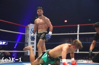 「(試合を終えての感想は?)まず、完全に呑まれたっすね。雰囲気というか、K-1に呑まれたっす。全然記憶がないです。何か、何もできんかったです。情けないしかないっすね。ダサいな、しかないですね。(相手の印象は?)向かい合ったときに、デカいなとは思ったんですけど、始まって、ガードの上からパンチが効くという噂を聞いてたんですけど、ガードの上からならいけるなって、ちょっと思ってしまって、何かカウンターを狙ってしまったんです。今回、動きを止めへんっていうのがテーマだったんですけど、完全にそれがミスでもらってしまったっていう感じっすね。