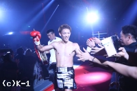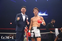 「応援ありがとうございました。1Rにダウン獲ったのに去年の大阪大会みたいに仕留め切れなかったので、日本vs世界の前の3試合でKOが続いてプレッシャーはあったんですけど、しっかりKOできて次に繋げられたのでよかったと思います。前半戦判定が続いてあまり面白くないんじゃないかと思ったかもしれませんが、後半から4連続KOで、この後の2試合も目を離さずに見てください。必ずピケオーにリベンジとK-1のベルを獲るのでよろしくお願いします」