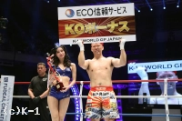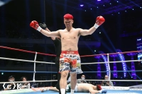 2R、京太郎は開始すぐにワンツーで出て、この右ストレートで実方をダウンさせる。立ち上がった実方だが、京太郎はすぐに再び右ストレートを突き刺し実方を倒してKOした。