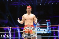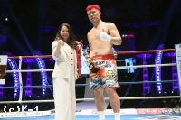 「(試合の感想は?)いろんな思いがあってここ(K-1)に辿りつきまして。11~12年ぶり、K-1のリングに立たせていただいたのもそうなんですけど、それ以前にボクシングとのいろんな違いを感じて、(K-1)おもしろいなと思いながらリングに上がって。やっぱり、K-1ルールの試合をやってなかったぶん、難しさもありましたし。蹴りに対してとか。そういうこと以上に、リング上で話したとおり、たいへんな中で応援してくれるっていうことに意味を感じて。そして、将来、プロを目指す子たちに何かを伝えれたらなという思いで戻ってきて、挑戦したということに関して、第一歩を踏み出せたことだけで僕は満足かなと思いますし。とりあえずKOできてよかったです、ありがとうございました。