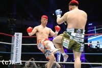 1R、実方のローに京太郎も右ロー、左ミドルと放つ。実方はローを放つが、京太郎もカウンターの右ストレートを狙う。京太郎は左インローも繰り出す。カーフキックを放つ実方。京太郎のローは実方が的確にカットする。