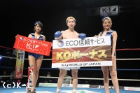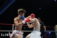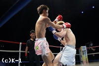 2R、西元の右フックを見切ってかわし、MOMOTAROは左ストレート。だが、やはり西元は効かないぞといったジェスチャーを見せ、依然MOMOTAROに圧力を掛けていく。ワンツー、カカト落としと見せていたMOMOTAROだが、西元はコーナーに詰め右ストレートから左フック。MOMOTAROは前に崩れ落ちてダウンし、立ち上がるもレフェリーはストップした。