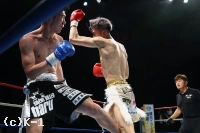2R、古宮は自在なフットワークで左右に動き北村の攻撃を空転させる。接近戦を仕掛ける北村だが古宮は動いてさばき、アッパー、ストレート。カーフキックも被弾する北村だが、圧力を発し前に出ていく。ロープに詰めて連打の北村。古宮はこれをブロックで弾く。そして北村にバックブロー。古宮は北村が来るところを右ストレート、左フックでとらえる。
