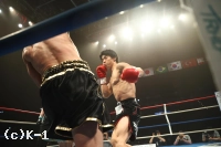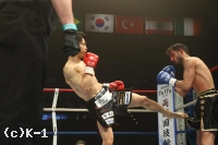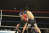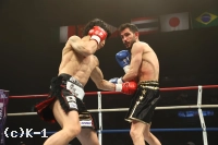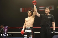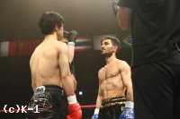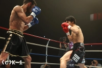 1R、金子はジャブと右ローでカラジャをけん制。そして右ストレートを打ち込み、いきなりダウンを奪う。立ち上がったカラジャに左ボディを効かせ、ボディに飛びヒザ、続いて右ストレートをフォローし、2度目のダウンを奪う。金子はボディへの飛びヒザ、左ボディ、左ミドルと当て、最後は右ストレートから左フックを返し、初回KOを決めた。