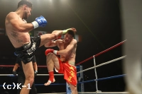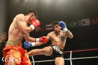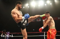 1R、ハッサンは顔面前蹴りでホイの体勢を崩し左フックを連打。ホイもジャブ、前蹴り、ローと攻撃を散らす。ハッサンもしかし飛びヒザ、顔面前蹴りと読みづらい攻撃を繰り出す。ホイもハイキック、ローと対抗する。ハッサンはホイのパンチをヘッドスリップしてかわし飛びヒザを放つ。