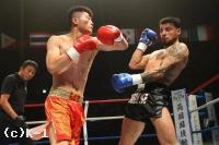 2R、ホイはハッサンの蹴りを浴びながらも左フックの連打を上下に返す。前に出てローを放つハッサンだが、ホイをプッシングして下がらせ、奥足への左ローを放って効かせる。ホイはこのローで動きが止まってくる。