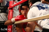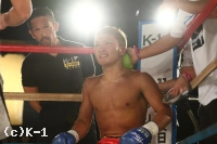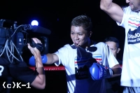 「(試合を振り返って?)この試合に向けて、凄くたくさんの時間を使って準備してたんですけど、1R目から練習していたことが、相手選手に技術があって、思うように出せなかったんですけど、最終的には気持ちの勝負で勝利をもぎ取れたと思います。(対戦相手の印象は?)技術も気持ちの強さもどっちも兼ね揃えていて。今回がプロデビューの選手でしたけど、そう思えないくらいの実力を持っていて。これから恐ろしい選手だなと思いました。(今後の目標)K-1 JAPAN GROUPの試合に出させていただいてるからには、K-1のリングが一番の目標なので、K-1のリングで勝ちたいというのが絶対にあります」