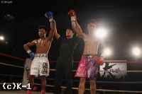3R、サウスポーに構えて距離を取る靖仁が左ボディから右フック、左ミドルから左ストレートにつなげる。細越は靖仁をロープまで下がらせ、右ストレートでのけぞらせる。細越が右のヒザ蹴りで前に出ると、靖仁は右フックを合わせる。細越も靖仁のハイキックを受けて右ストレートを返すが、クリーンヒットはない。ジャッジ1名が靖仁を支持したものの、残り2名はイーブンとし、試合はドローに終わった。