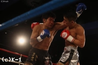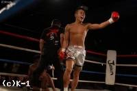 2Rもパンチ&右ローで攻める三輪。飛びヒザ蹴りから連打をまとめ、顔面へのヒザ蹴りでダウンを奪う。再開後、三輪はバックブローからの連打でダウンを追加。最後は三輪の連打で中里の動きが止まり、レフェリーが試合をストップした。