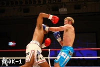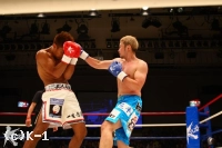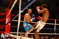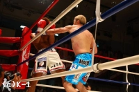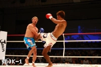 EXR、意気込みを見せ前に出る原田のミドルとローを大沢はかわし当てさせない。距離を作って原田に打たせ、逆にこれをかわして大沢は右ストレートを巧打する。原田はこの右ストレートを受け一瞬のけぞるが、すぐにまた連打に入る。しかし大沢は再びカウンターの右ストレートをヒット。両者打ち合うもクリーンヒットは得られず終了となる。ゴングが鳴ると両手を広げた大沢に対しうなだれた原田と両者の様子は分かれる。