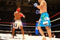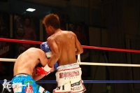 2R、大沢は前に出て距離を詰めると右ローから力を込めた左フックと右ストレートで襲う。しかし原田はこれを柔らかなボディワークでかわす。右ローを当てつつ迫っていく大沢。しかし大沢が左フックで踏み込んだところへ原田はショートストレートをカウンター。だがスピードで上回る大沢は踏み込んでの左ストレート、左フック、右ローと徐々にヒットの数を上げていく。