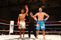 3R、パワフルなパンチをフック、ストレートと振るう原田だが、大沢はよく見えておりブロックしてこれを当てさせない。原田の動きも見えてきたか、手が落ちているところを見逃さずに右ストレートを当て、原田が連打をまとめてくるとやはりブロックして弾く。原田が前蹴りを打ち込んでも両手を広げて効いてないぞとアピールし、原田をスリップさせるとどうしたとばかり腰に両手を当てる。大沢は原田のパンチをブロックしつつ、最後まで翻弄するかのように振る舞い試合を終える。