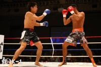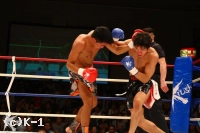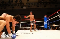 2R、廣野が逆に前へ出て秋元を押して行かんとするが、秋元は押し負けない。しかし、そこへ廣野のストレートがヒット。続けて廣野はボディへのヒザも打ち込む。強靭な肉体と馬力を見せる秋元だが、次第に廣野が攻撃の精度を増してくる。ボディにパンチをまとめ秋元の失速を呼ぶ。秋元には相手を掴む反則でレフェリーから口頭注意が出される。左右フックを振り回す秋元だが、疲労で足が定まらない場面も。