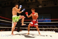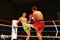 EXR、意気込みを見せ前に出る牧平。そして左ローを浴びせていくが、山際も右ミドルを着実に返していく。山際は後半を狙う作戦か。牧平の左ローに右ストレートを合わせた山際は、右ローで牧平のバランスを崩して転倒させる。山際、牧平の順で両者ストレートを当て合う。牧平は大技の跳びヒザを見せるがヒットならず、逆に山際は左フック、右ストレートとパンチを当てて終了。