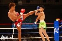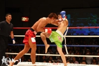 2R、山際は右ロー、右ミドルで向かうが、山際に対し体の大きさが際立つ牧平は蹴りを受けてもすぐ左ミドル・ローを返す。牧平の左ローの返しを警戒しつつ右ミドルを打ち込んでいく山際。しかし途中で山際の蹴りがローブローとなってしまい一時中断。再開すると前に出る牧平だがホールディングとなってしまいレフェリーから注意を受ける。