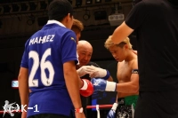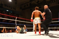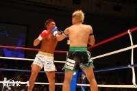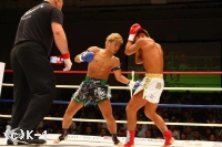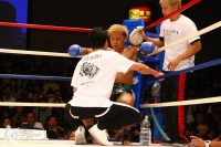 3R、中澤はグローブを叩き合わせるフェイントから左フックをヒット。南野が同じ攻撃を返してもこれを当てさせず、このラウンドも変わらず南野を追いつめる。そして南野のハイキックをもらうもこれを意に介さず、逆に左ボディフック連打、続けての左フックで追い込み、そして遂に左フックで南野の頭部をを刈り取るようにとらえてダウンを奪取。吠えた中澤はフィニッシュに向かうが、ここで攻撃が掴みからのパンチとなってしまいレフェリーに注意を受ける。フラフラの南野であったが何とかラウンドいっぱい持ちこたえ、KOは免れ試合を終える
