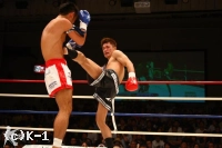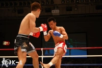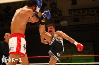 2R、離れた間合いから威力ある右ストレート、右ローを打ちつけていく明戸だが、郷州は直撃させず、逆にアッパー・フックを交えた4連打から右ローと攻撃を明戸に見舞う。試合は我慢比べの様相も呈するが、郷州の左ボディフックと右ローに明戸はダメージが見え始める。