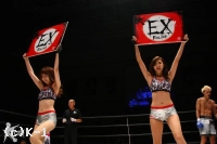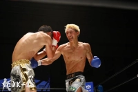 EXR、瑠輝也の左アッパーに岩崎は左フックをカウンター。しかしやや圧力が落ちたかの岩崎に対し瑠輝也はリーチを活かして左右ストレート、左ボディ、左ヒザと打ち込む。瑠輝也が左三日月蹴りをヒットさせると岩崎はガードがややボディに集まってくる。それでも岩崎はハイキックをヒットさせ、瑠輝也にマウスピースを吐き出させる。さらにボディを攻める瑠輝也に対し、岩崎もボディへのヒザを連発して終える。