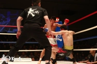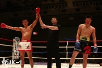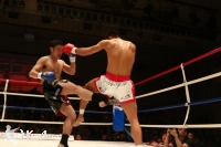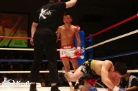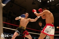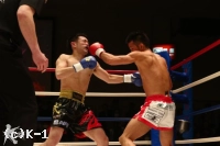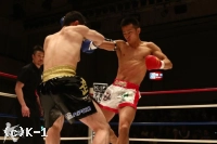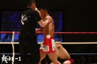 3R、渡辺は郷州をコーナーに押し込んでボディブローとヒザで攻勢。だが、郷州はこれをこらえた後で前に出てきて、また左目周辺から出血してきた渡辺にパンチを振るう。渡辺が前に来るところを郷州は右ストレート、右アッパー、そしてボディへのヒザ蹴りと見舞う。渡辺も左右のフックで応戦するが、ダウンを奪い返すには至らない。