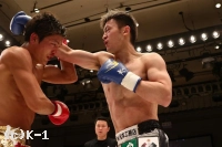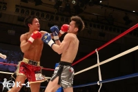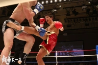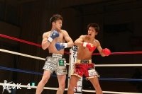 2R、左フックと右ストレートを強振して前に出る高下。間合いを保って蹴りを出す蔵人は、そこから前に出てボディに左ヒザを入れ、さらに顔への左ストレートもヒット。両者打ち合いとなり互いにストレートをヒットさせるが、そこから蔵人が左ロー、左ストレートで高下を押す。だが、高下もボディへの右ヒザを突き刺して反撃。さらに蔵人へ右ストレートを送る。