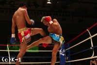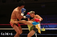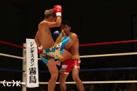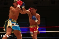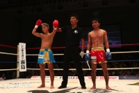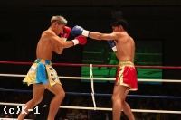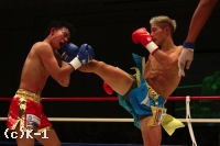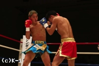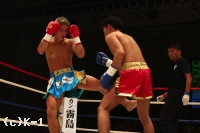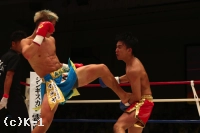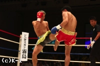 2Rもやはり両者ローを飛ばし合う。しかし小倉はローにパンチを織り交ぜる。だが森坂はインロー、ミドル。小倉は森坂の蹴りで前に出にくいかの様子が見られたが、ローとボディパンチで前進を図る。森坂はバックブロー、バックスピンキック、跳びヒザと繰り出す。小倉もしかしこれで止められず、前に出てローを蹴りためていく。森坂のミドルに小倉はパンチからのローをリターン。両者均衡はまだ崩れない。