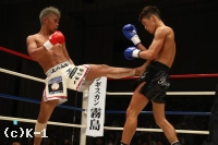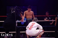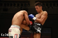 3R、ダウンを奪われているバズーカは前進とパンチをともに強める。しかし大沢もそれはお見通しであるか、ガードをしっかりしてクリーンヒットを与えない。大沢はバズーカが攻めて出ても強く反撃には向かわず、そのことでカウンターの機会を与えていない印象。大沢は接近戦で左右ボディ打ちを見舞ってバズーカを下がらせ試合を終える。