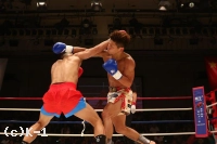 2R、ジュンユーは1Rよりグッと前に来て間合いを詰め、左ストレート、右フックに力を込め強振する。山本は右前蹴りのフェイントから左ストレートを打ち下ろし、これでジュンユーの眉間をカットする。ガツガツと前に来るジュンユーだが、山本はよく見てパンチを当てさせず、逆に前蹴り・右ストレートと打ち込み、的確に攻撃を当てる。