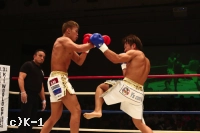 1R、鈴木は左ミドルを連打。蓮實は頭を低くして前進し、左右フックで突進する。鈴木は右フックを返す。見合った状態から蓮實はインローと前蹴り、鈴木は左ミドル。後半は前進の止まった蓮實に、鈴木はなおも左ミドルを連発する。