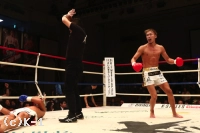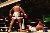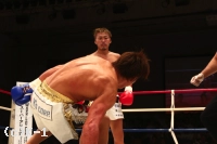 3R、開始早々に鈴木が左フックでダウンを奪う。打ち合いからさらに左フックでダウンを重ね、蓮實が挽回を期してパンチを振ってくると、狙い澄ました左ハイをヒット。鈴木が衝撃のKO勝利を見せた。