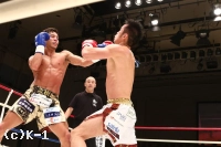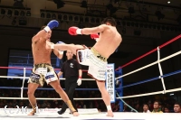 1R、郷州は前蹴りから跳びヒザで向かう。山本はこれを正面で受けず、ステップで横にかわして応戦する。郷州は右ストレートを当て、前蹴りで山本を追う。山本も前蹴りを飛ばして郷州をストップする。一旦止まったかに見えた郷州だが再び前進して左右のクロスで山本を襲う。山本をコーナーに詰め郷州は左右のストレートからボディへのヒザ。前進してくる郷州を山本はやはりサイドへかわし、左ハイを叩き込んでダウンを奪取。すでに3分は回っており、郷州が立ち上がったところで終了のゴングとなる。