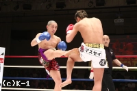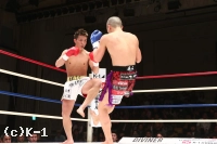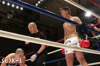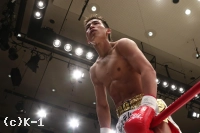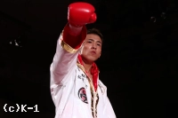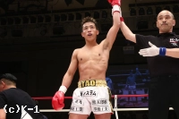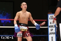 「(試合を振り返って?)今回、相手が計量で1.9kgオーバーということで、けっこうでかいと思って最初戸惑ったんですけど、スカッとした試合で勝ててよかったです。(対戦相手の印象は?)気持ちが強くて、パンチや蹴りのイメージがけっこうあったんで、無駄な攻撃をもらわないようにガードを意識しました。(今後の目標は?)フェザーは激戦区で強い選手がけっこういるので、どんどんこれから倒していってK-1のチャンピオンになりたいと思います」