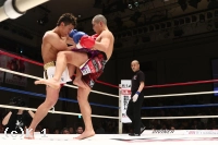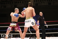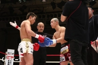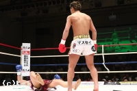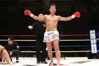 1R、じりじりと前に出る三輪だが、鷹大は下がりつつ、三輪の攻撃の終わりに右ローキックを放つ。下がりながらの応戦となった鷹大だが、三輪のジャブに右クロスをかぶせて先制ダウンを奪取。さらに立ち上がった三輪に左フックをクリーンヒットして豪快に倒し、これでKO勝利を上げた。