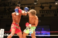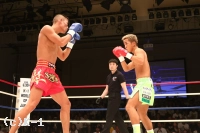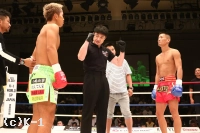 1R、前蹴り・ローで前に出ていく堀井だが、瑠久は軽やかなステップでこれをかわし、ローを当てていく。そして左フックを上下打ちして堀井に迫る。だが、ここで瑠久に連続してローブローが見られ、やや試合が中断する。前に出てくる瑠久にカウンターの右ストレートを狙う堀井だが、瑠久が逆に右ストレート・右クロスとヒット。さらに瑠久は左ボディフックも打ち込み1Rを終える。
