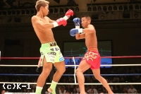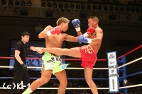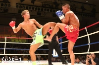 2R、瑠久はプレッシャーを掛けていくが、堀井は前蹴り・左ミドルで対抗し、瑠久が前に来たところへ左フックをカウンターで入れる。しかし瑠久は打ち気と強気を崩さない。空手出身らしく後ろ回し蹴りで堀井を後退させ、さらにパンチラッシュを見舞って迫る。