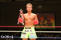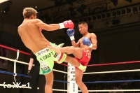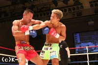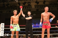 「(試合を振り返って?)全然満足できない試合で、落ち込んでます(苦笑)。すごい調子はよかったはずなんですけど、俺の思ったとおりに動いてなくて、自分のよさが全然出てなかったなって。前回負けてからの復帰戦というか、ちょっと時間が空いての試合だったんで。全然満足してないです。(身体が動かなかったのは階級を下げたから?)いや、試合前はこの階級がスゲー適切だなと思ったんですけど。まだまだ、もっと自分の強さが出ると思うので。ちょっと反省ばっかですね。もっと自分、強いはずなんですけど。(対戦相手の印象は?)気持ちが強かったですね、いい選手だと思います。(今後の目標は?)自分、まだまだ全然こんなもんじゃないんで、マジでもっと強いんで。次、もっとKOとかして。K-1の横浜大会にも出られるくらいの選手だと思うので、もっとがんばります」