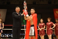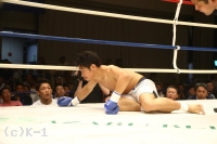 「(試合を振り返って?)凄く気持ちよくて興奮してます。(どんな攻防だった?)卜部選手はコンビネーションが優れてる選手なので、それに合わせてアゴを捕らえ、KOすることができました。イメージに合わせた練習をしてきました。(今後の目標は?)もし機会があれば62.5kgの階級でK-1に出場したいです」