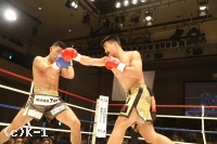 2R、圧力を増して迫るチョンヤン。伊藤は1Rのように回って受け流さんとするが、チョンヤンは1Rより距離を詰めボディストレートの数も増やしてくる。ストレートをボディだけでなく顔にも飛ばしヒットを上げるチョンヤン。伊藤はガードを固めてヒザを返し、一気に攻め込もうとするチョンヤンをせき止める。